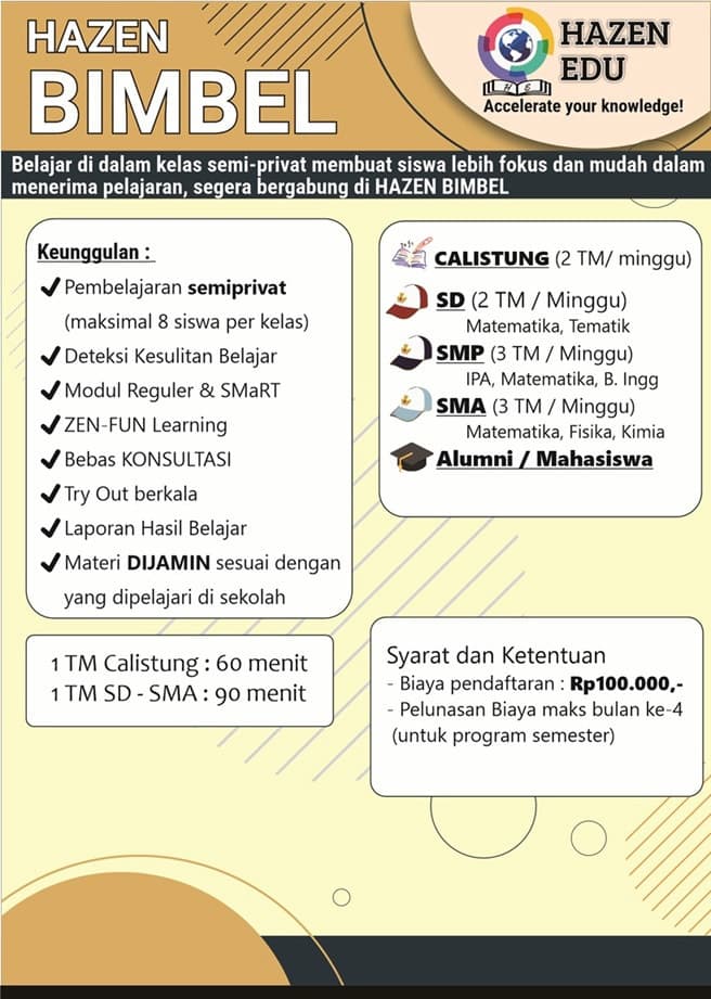 Gabung dengan Hazen Edu! Tingkatkan Prestasi Akademikmu, Raih PTN Favoritmu!!